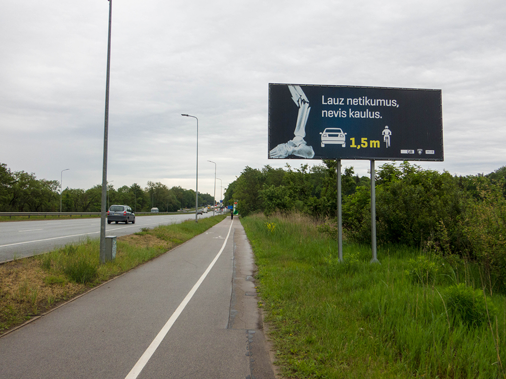Aus der Stadt raus hat es mal wieder eine gefühlte Ewigkeit gedauert, aber irgendwann ist auch das vorbei. Die Radwege in der Stadt waren klasse, aber kaum draußen gab es eine Unterbrechung. Aber immerhin wurde die Autofahrer mit einem Schild darauf aufmerksam gemacht, wie sie sich verhalten sollte.