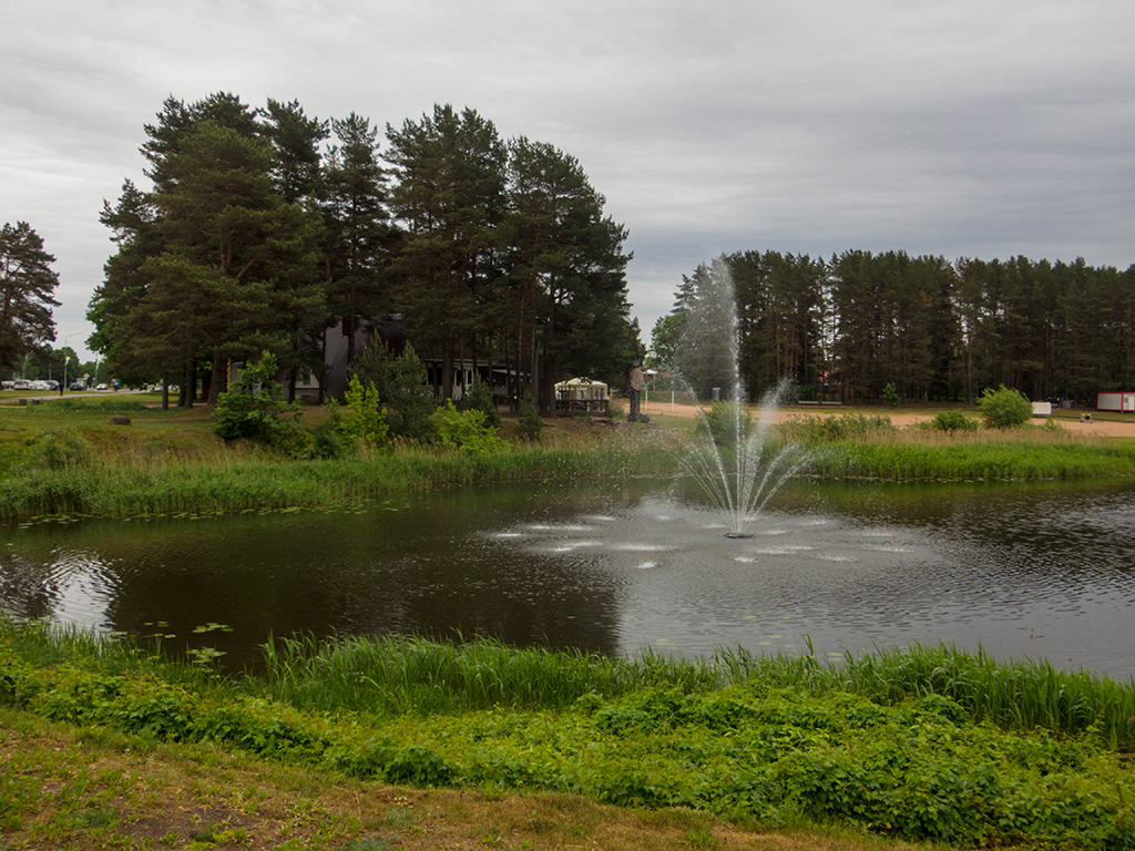 Und so erreichte ich gegen 14:00 Uhr mein heutiges Hotel Kapteiņu Ostai. Erstmal das Fahrrad in einem Lagerraum untergestellt, mich aufgewärmt und dann geduscht. Das Hotel lag mitten im Nirgendwo, es gab also keine Alternative. Und so konnten sie auch an der Bar für ein Bier 4,50€ verlangen. Da es aufgehört hatte zu regnen, ging ich noch zu dem nahe gelegenen Cache hatte jedoch kein Glück. Ich wollte aber auch nicht die nassen Holzstufen den Turm hinauf. Beim Abendessen war im Restaurant noch ein weiterer Tisch belegt, ansonsten war hier tote Hose. Ich könnte mir aber vorstellen, dass im Sommer, denn der dazugehörige Campingplatz voll war, das Restaurant gut besucht ist.