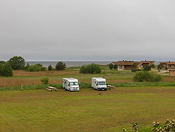 Und so konnte ich nach dem Aufstehen von meinem Zimmer aus die Ostsee sehen. Die war gestern im Regen verschwunden. Und heute sah man dann auch den weitläufigen Campingplatz, des sich zwischen Hotel und der Ostsee erstreckte.
