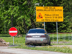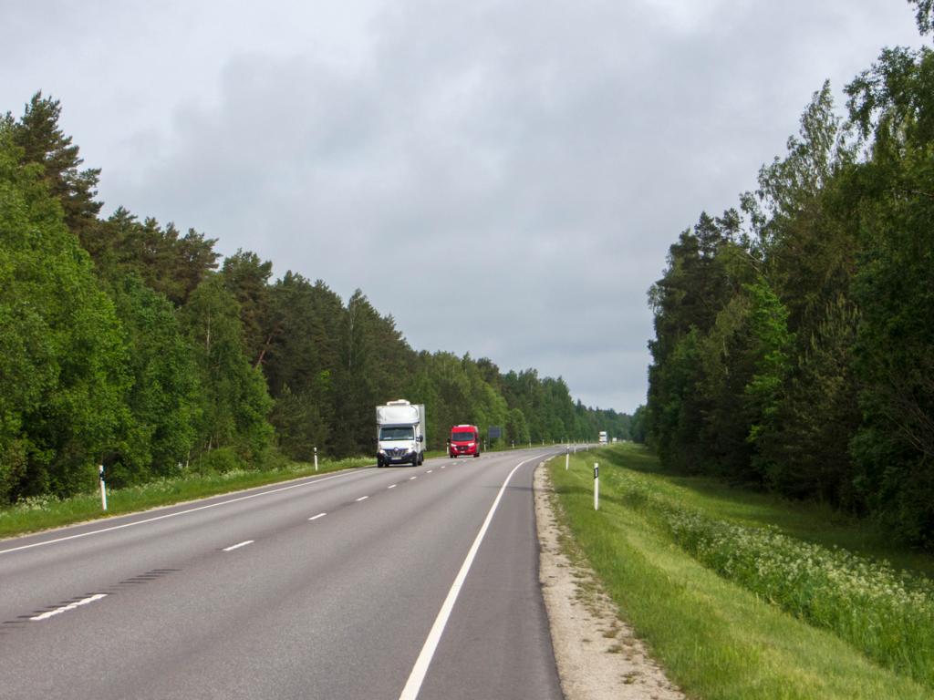 Gestärkt ging ich gegen 9:00 Uhr auf meine heutige Etappe. Erstmal suchte ich an dem Turm, an dem ich gestern schon war, den Cache. Aber wieder nichts, Mist. Und so fuhr ich auf der bekannten A1 (hier gab es einen Radweg) in Richtung estnische Grenze.