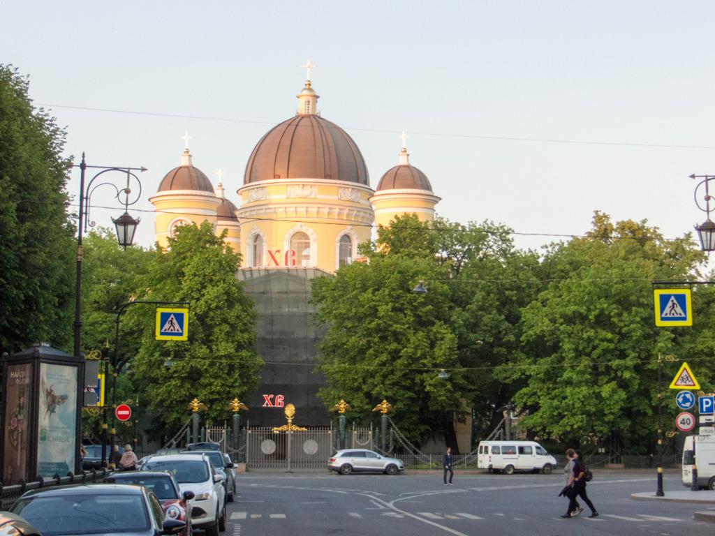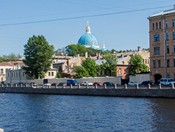 Dann tauchte am Fluss Fontanka die Dreifaltigkeitskathedrale mit ihren himmelblauen Kuppeln auf.