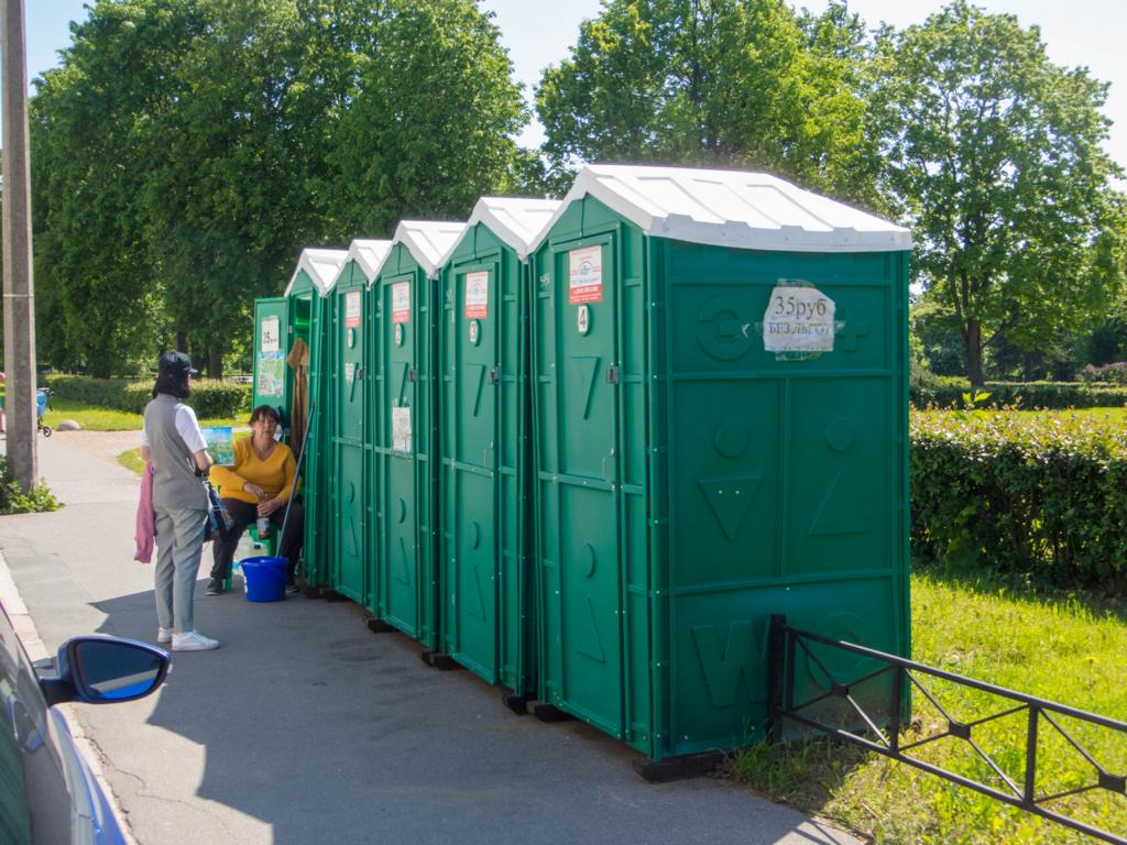 Nach einem anschließenden Besuch im Biergarten wollten ich noch auf die Toilette. Da haben sie so ein schönes Schloss und dann stellen sie Baustellen-Klos hin und der Besuch kostet auch noch 35 Rubel.