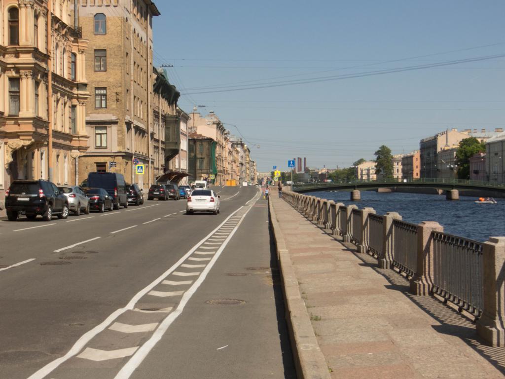 Am Fluss Fontanka ging es auf einem Radweg, der zwar nicht gut war, aber zumindest von den Autofahrern einigermaßen respektiert wurde. Nur wenn ein Auto abbog, musste man tierisch aufpassen, da die Autofahrer da keine Rücksicht nahmen.