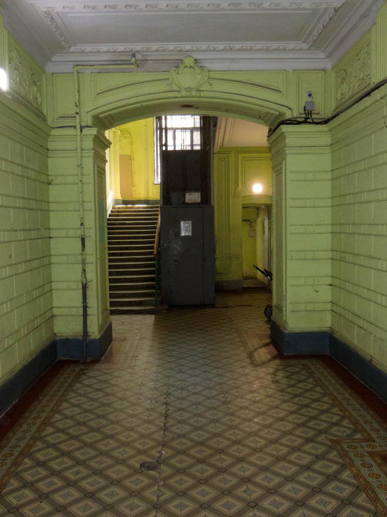 Nachdem ich den Code eingegeben hatte, öffnete sich die Tür. Drinnen ging es nicht besser weiter. Hier wollte ich mein Fahrrad keine 3 Tage stehen lassen. Und da das Fahrrad nicht mir mir und meinem Gepäck gleichzeitig in den wenig vertrauenserweckenden Aufzug passt, trug ich mein Fahrrad in den 4. Stock. Wenn es erstmal oben ist, werden sie schon nichts dagegen haben, dass ich es mit ins Zimmer nahm.