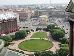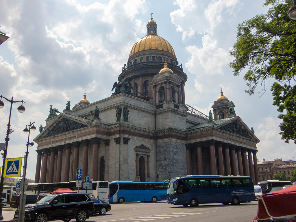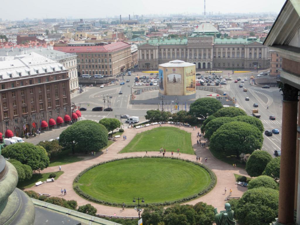 Die Kirche war zwar erst 1858 mit der Vollendung des Innenraumes endgültig fertiggestellt, jedoch schon seit den 1930er-Jahren als Staatsmuseum verwaltet. Der Innenraum ist bombastisch mit allerlei Ikonen und 3 riesigen Bronzetüren, allerdings ganz anders als die Blutskirche. Noch beeindruckender ist allerdings der Blick von dem Rundgang um die Kuppel, der seit heute wieder geöffnet war. Der Blick auf den Isaakplatz ist schon beeindruckend.
