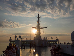 Als es in der Restaurants wieder ruhiger wurde, ging ich zum Abendessen. Die Preise waren für so einen Kahn fast noch erträglich. Wobei, für eine Pizza mit einem Bier 23€ ist nicht gerade ein Schnäppchen. Aber ich war satt...