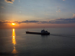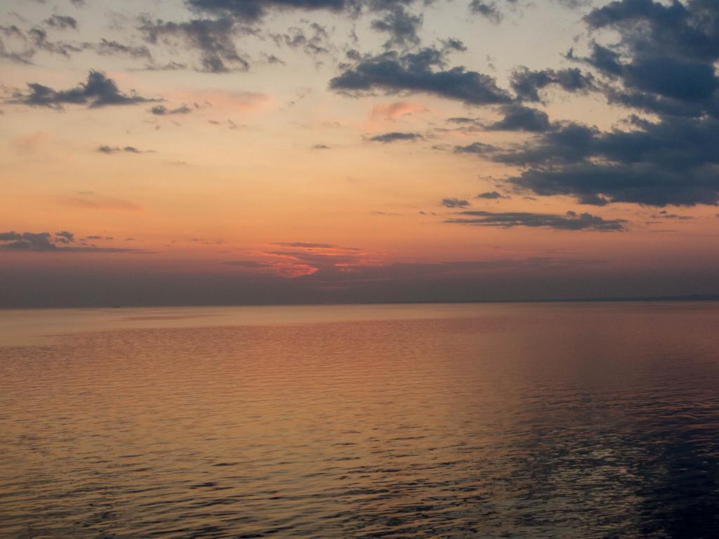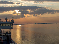 Während ich so da saß, kam ein keiner Schiff in der Abendsonne entgegen.
