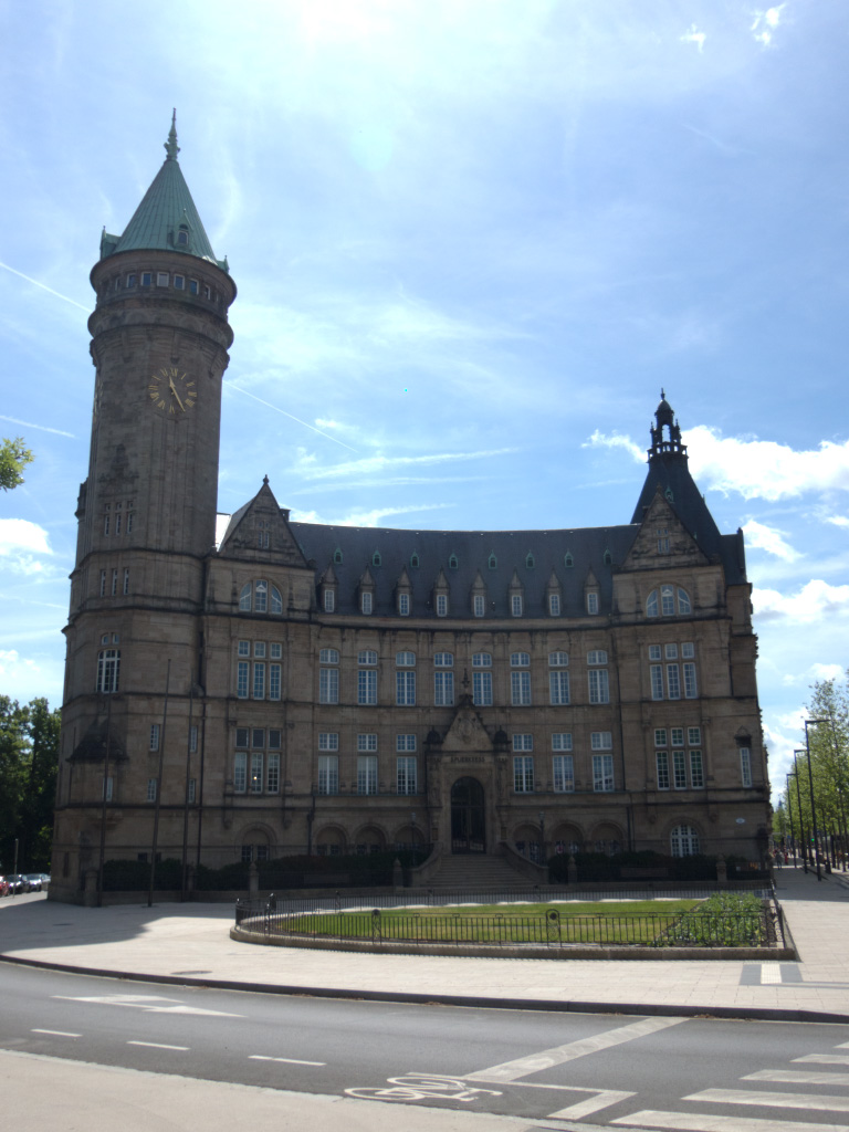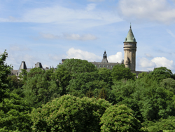 Ein Stück weiter tauchte dann hinter den Bäume ein Turm auf. Gehärte der zu einem Schloss? Nein, das ganze ist weit weniger romantisch: Es ist der Turm der Zentrale der luxemburgischen Sparkasse. Aus der Nähe betrachtet war der Anblick weit weniger beeindruckend, als er zuvor in der Phantasie erschien.