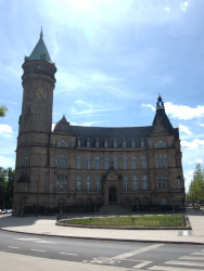 Von hier hatte man auch eine tolle Sicht auf den historischen Stadtkern und die dahinterliegenden neueren Gebäude (u.a. Gerichtsgebäude).