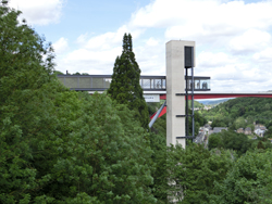 Weiter ging es zum Personen-Panorama-Aufzug Pfaffenthal, mit dem man einen Höhenunterschied von 71m von der Pfaffenthal-Oberstadt zum Stadtteil Pfaffenthal im Alzettetal überwinden kann. Von hier oben hatte man einen tollen Blick über die Landschaft rund um den Fluss Alzette.