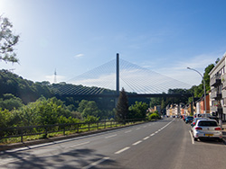 Und so konnte ich die Stadt schnell hinter mir lassen. Zum Abschied konnte ich noch die imposante Victor-Bodson-Brücke mit dem 106m hohen Pylon betrachten.