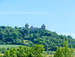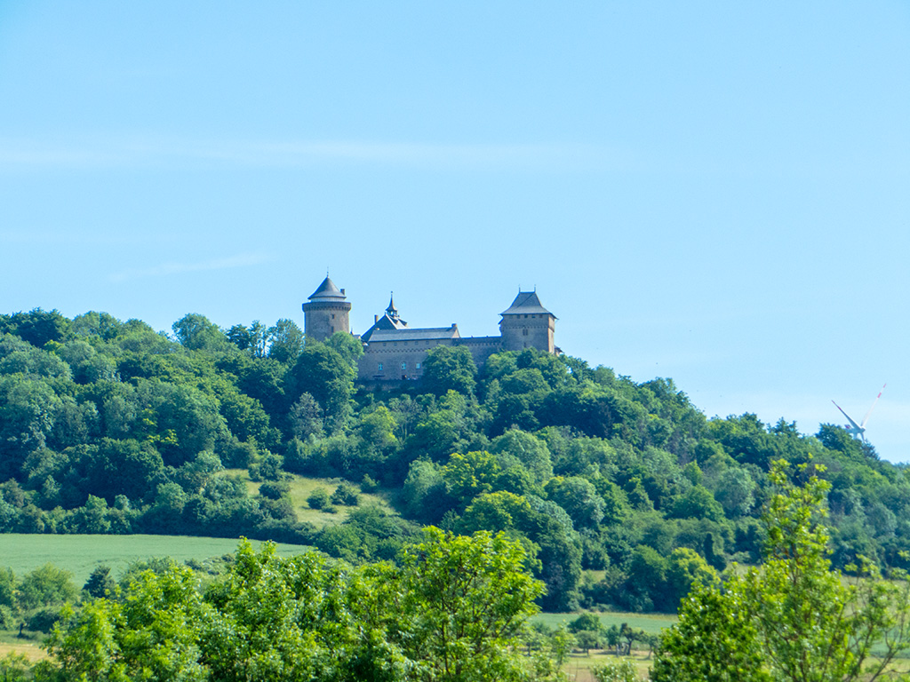 Ich überquerte die Mosel und fuhr, jetzt in Frankreich, den Anstieg hinauf nach Kitzing und dort dann weiter nach Manderen. Unterwegs hatte man einen tollen Blick auf das Château de Malbrouck, einer Burg, welche zu Beginn des 15. Jahrhunderts von Arnold VI. von Sierck erbaut wurde.