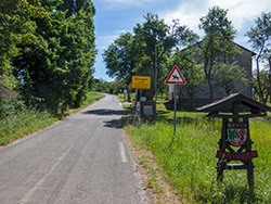 Oben angekommen ging es, wie schon gewohnt, immer auf und ab, bevor ich wieder in Deutschland stand. Zumindest war am Ortseingang ein Ortsschild, welches auf den Landkreis Saarlouis hinwies. Und einen kleinen Schlagbaum gab es auch noch. Vogelwild hier, das Dreiländereck Deutschland-Frankreich-Luxemburg.