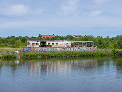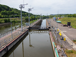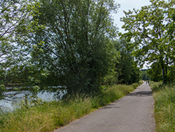 Kurz nach der Statue musste ich wegen einer Baustelle auf die nördliche Flussseite auf den Leinpfad wechseln. Der Wechsel der Flussseite hatte den Vorteil, dass die Saar mich von der Autobahn A620 trennte. An der Schleuse Saarbrücken war der kurze Ausflug auf die nördliche Flussseite vorbei und ich fuhr wieder auf meiner geplanten Route.