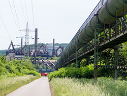 Bei der Schleuse Lisdorf konnte ich auf den Saarland Radweg fahren und nun direkt an der Saar entlang radeln. War schön, so ganz ohne Autos die Landschaft zu genießen. Wobei, ab dem Walzwerk Nauweiler am Ufer der Saar fuhr ich entlang einer großen Heizleitung, dafür mit Blick auf das UNESCO-Weltkulturerbe Völklinger Hütte entlang. Nach der ganzen Natur in den Ardennen oder auch im Dreiländereck war der Anblick schon gewöhnungsbedürftig. Aber so ist es nun mal, ohne Industrie kein Wohlstand. Irgendwie auch interessant die Industrieanlagen, die man in dieser Form nicht jeden Tag sieht.