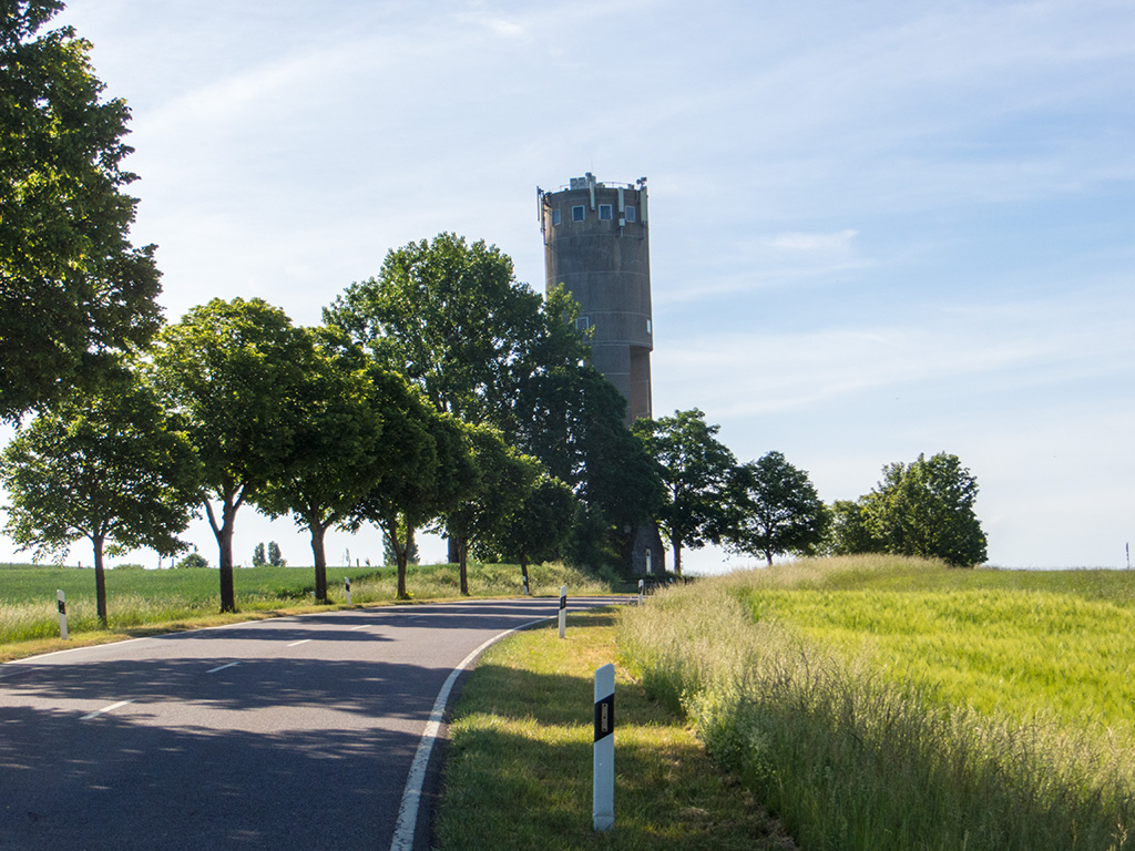 Kurz danach ging es etwas bergauf, dort stand dann ein Turm (ich vermute mal ein Wasserturm, aber sicher bin ich mir nicht).