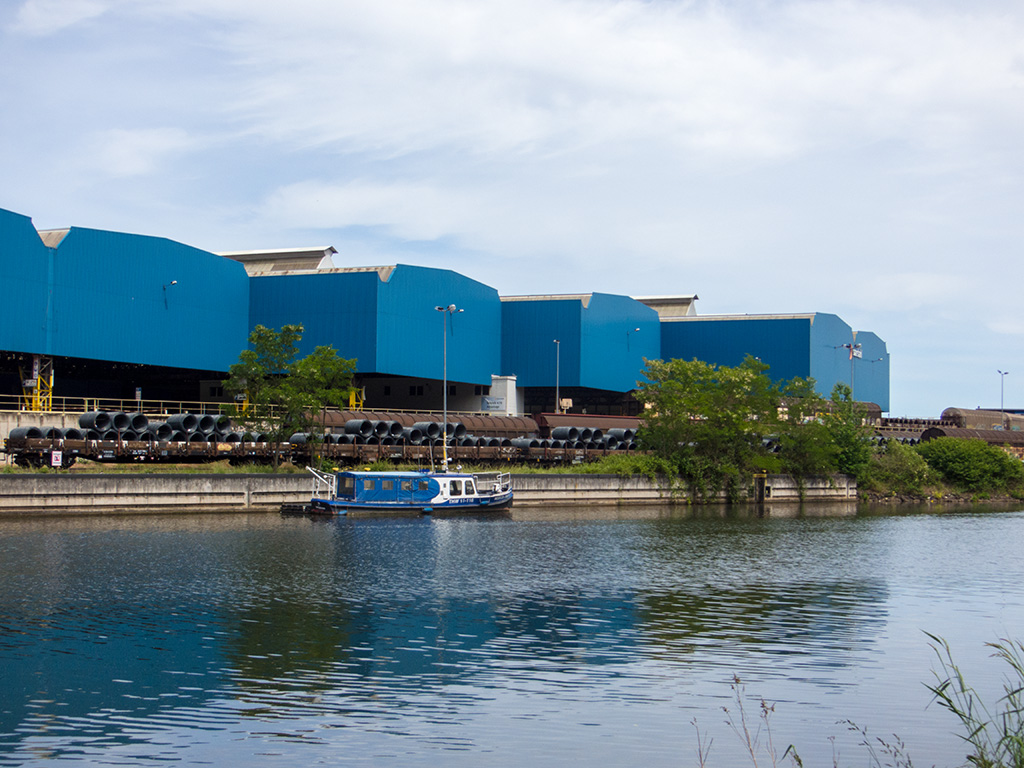 Auf der gegenüberliegenden Seite tauchte ein verfallenes Gebäude mit Graffitis auf dem Sockel auf. Was immer hier einmal war es war verfallen und damit in krassem Gegensatz zu dem unmittelbar daneben liegendem Stahlwerk der Saarstahl AG. Ist schon beeindruckend die Stahlproduktion und -bearbeitung zu sehen.
