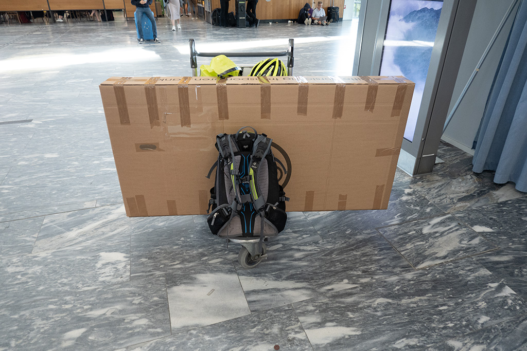 Nach dem ausgiebigen und opulenten Frühstück ging ich gegen 9 Uhr zum gebuchten Shuttlebus (hier muss man echt 8€ für den Shuttlebus vom Hotel zum Flughafen zahlen) und startete somit den letzten Teil meiner Reise. Viel hatte ich ja nicht dabei, aber ausreichend viel damit ich im Shuttlebus auffiel. Für die meisten ist so ein Fahrrad im Flugzeug doch etwas Ungewöhnliches.