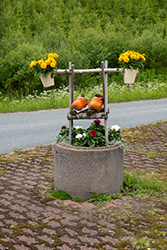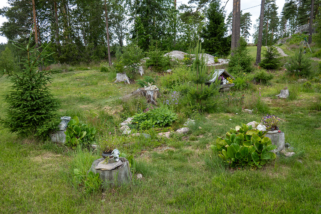 Gut gestärkt ging es auf die Restetappe für diesen Tag. Und wieder war eine Abzweig zu einem Haus wunderschön markiert. Diesmal mit Figuren auf Baumstümpfen. Toll gemacht!