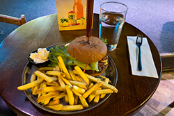 Und war gab es in einem Rock Hotel? Richtig zumindest Burger, wenn heute auch keine Live-Musik. Ohne ein Musik-Event im Lokal war es im Zimmer darüber sicher ruhiger zu schlafen.