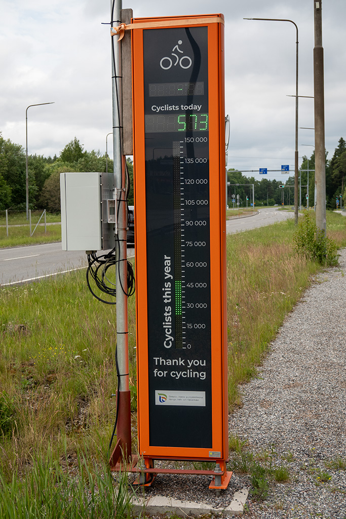 Am Ortseingang von Turku stand dann eine Anzeige, die die Anzahl der Fahrradfahrer, die diesen Punkt passiert hatten, anzeigte. Leider sind durch die LED-Technik nicht alle Anzeigen auf dem Bild sichtbar.