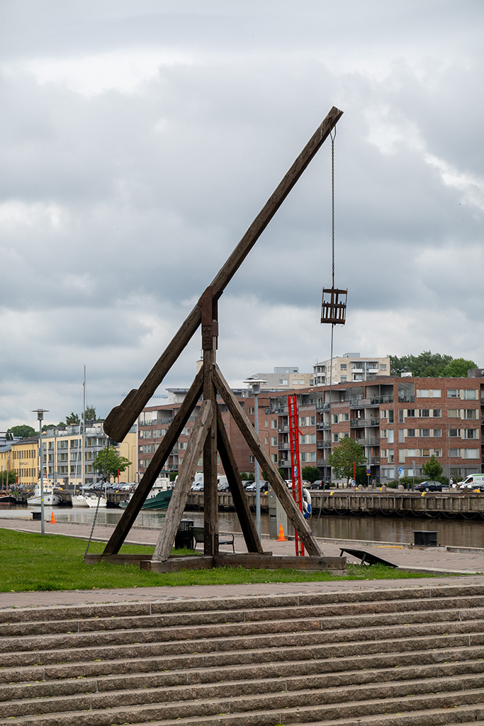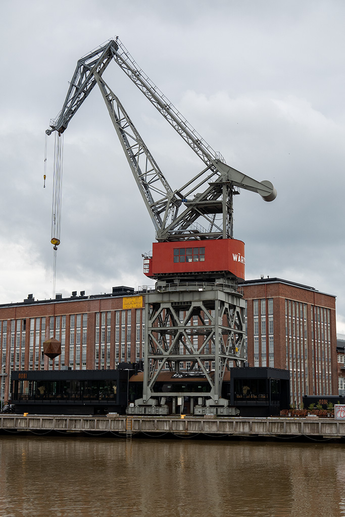 Am Ufer des Aurajoki standen sich zwei Hafenkrane gegenüber. ein alter und ein moderner Kran. Interessant, den technischen Fortschritt so nah beisammen zu sehen.