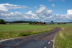 Glücklicherweise konnte ich die Kreisstraße schon bald verlassen und auf einem wunderschönen Nebensträßchen gen Westen radeln. In dem Örtchen Malsta standen, neben schönen Häuschen, auch gerne land- oder forstwirtschaftliche Anhänger quer auf der Straße. Landleben halt, musste man warten, bis die Straße wieder frei war.