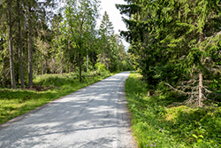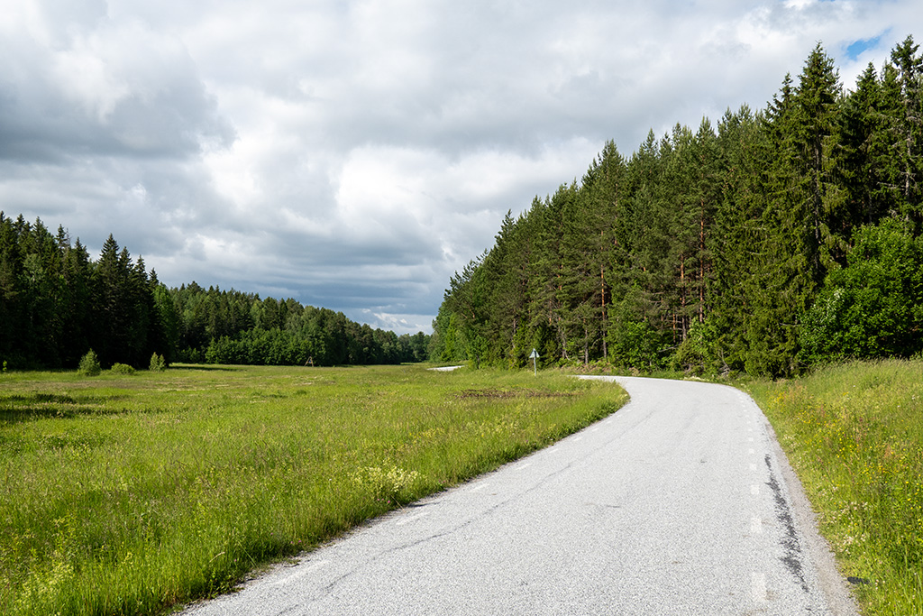 So ging es einen nach dem anderen Kilometer die Straße entlang. Hier gab es wohl keine Elche mehr, dafür Wildschweine. Die Tiere sind zwar keiner, aber genauso unangenehm, wenn sie von der Seite kommen. Kurz hinter Rimbo passierte ich den Langsjön und den Metsjön und war happy, als ich ein Café am Wegesrand entdeckte. Leider war das Café wegen Ruhetags geschlossen und so musste ich dann doch wieder eine Tankstelle ansteuern, um Kalorien nachzufüllen. Der Wind wurde stärker und kam immer mehr von schräg vorne oder gleich ganz von vorne. War irgendwie unangenehm.
