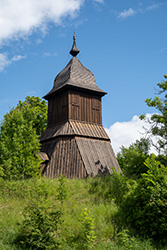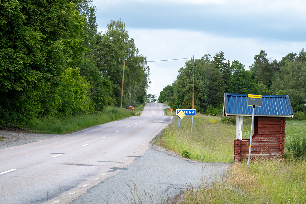 Es dauerte nicht so lange, bis ich kurz vor Knivsta die Kreisstraße 77 wieder verlassen und auf einem kleinen Sträßchen in Richtung Uppsala radeln konnte. Recht bald kam dann die Kirche Östuna kyrka mit dem Friedhof und einem hölzernen Glockenturm gegenüber.