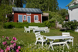 Nach dem Rundgang im Örtchen war es Zeit, sich um das Abendessen zu kümmern. Da hier kein Restaurant in der nähe war (da nächste war in Norberg, aber da hätte ich mit dem Zug hinfahren müssen, war heute selbst kochen angesagt. Da ich in meinem Rucksack nicht viel transportieren konnte, gab es heut Nudeln mit Pesto. In der Küche richtete noch eine Familie mit zwei kleinen Kindern, die das Zimmer direkt unter mit hatten, das Essen. So saßen wir dann alle vor dem Haus im Garten und aßen und hatten einen schönen Abend.