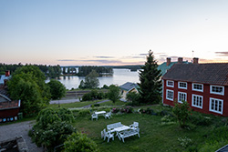 Langsam wurde es Zeit, zurück zum Zimmer zu gehen und den Tag zu beenden. Auf die Dämmerung braucht man nicht zu warten, hier war es ziemlich lang hell (auf dem Foto war es 22:30 Uhr). Dafür wurde ich mit einem tollen Blick auf den Garten und den See belohnt. Es war schon eine schönes Fleckchen Erde. hier.