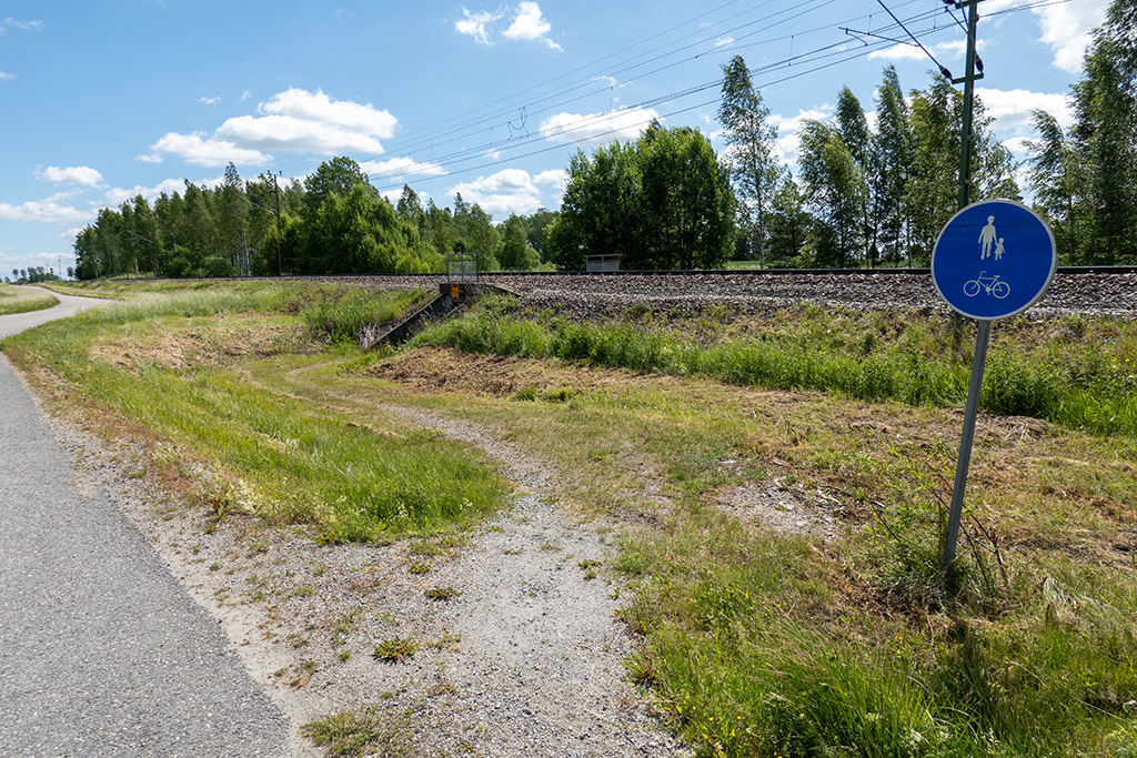 Auf der anderen Seite, als ich an der Straße angekommen war, sah ich auch den Grund für diese Unterführung: Ein Bushaltestelle für die Bewohner der wenigen Häuser jenseits der Bahnlinie.