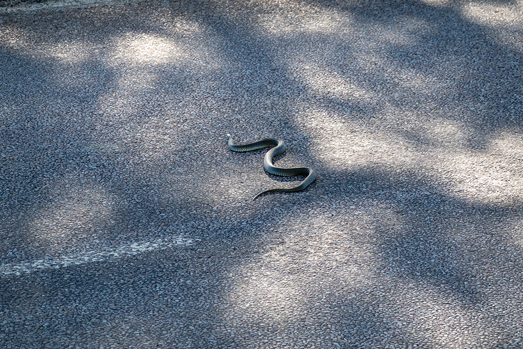 Nachdem ich geduscht und wieder ausgehfertig war, erkundete ich den kleinen Ort Ängelsberg. Hier war so wenig los, dass sogar Schlangen gefahrlos die Straße überqueren können. Bei meiner Reisevorbereitung dachte ich noch, dass sie mich veräppeln wollten, als ich las, dass man in Schweden viele Schlangen sieht (auch auf den Straßen). Aber scheinbar war es tatsächlich so.