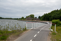 Auf meinem Weg zur Fähre kam ich am Hvidkilde See vorbei. Der See an sich lag ja schon wunder schön, aber der Fahrradweg war der Kracher. Führte er doch auf einem Holzsteg über den See, parallel zur Straße. Wie abgefahren war das denn, wenn kein Platz ist, wird halt unkonventionell gearbeitet.