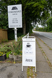 Langsam aber sicher machte sich der Hunger breit und es musste was zu futtern her. Die Power-Bar-Riegel erzeugten heute bei mir Sodbrenne, so dass ich keinen weiteren essen wollte. Und die Snickers war aus. Aber hier war es wie in Schweden, nichts kam des Weges entlang. Dann sah ich das Schild mit der Kaffee-Tasse. Blöd nur, dass sie hier von 11:30 Uhr - 15:00 Uhr Mittagspause hatten. Und ich war um 13:30 Uhr da.