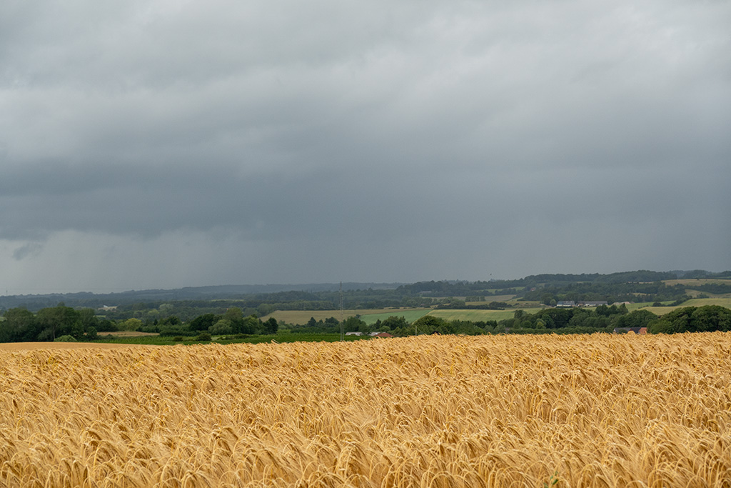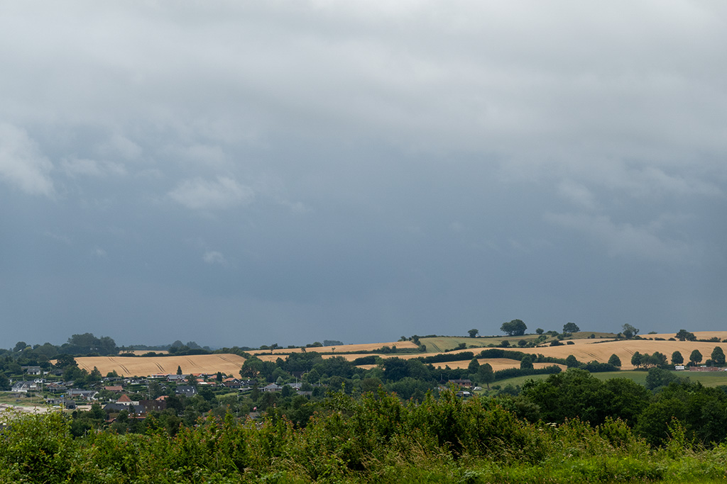 Dann ging die Straße ab nach Bøjden zu meiner Fähre. Die Wolken am Himmel wurden immer dunkel und unheilvoller.