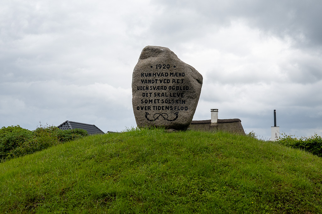 In Sonderhav stand am Straßenrand ein gravierter Stein auf einem kleinen Hügel. Es handelt sich wohl um einen Gedenksteine (oder Wiedervereinigungsstein). Etwas genaueres habe ich nicht herausfinden können, wäre aber interessant, um was es sich hier genau handelt.