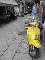 Leider fahren auch hier in Italien zwischenzeitlich immer mehr "Plastikroller" rum, die gute alte Vespa wird leider zum Auslaufmodell. Es ist aber immer wieder schön, so einen alten "Blechroller" zu sehen.