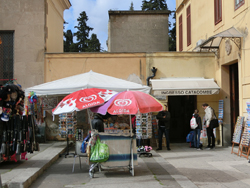 Von dort aus ging ich über die Piazza San Domenico zu Mercato della Vucciria. Die Roller standen nicht nur an der Straße, sondern fuhren auch durch die enge Gasse des Marktes.
