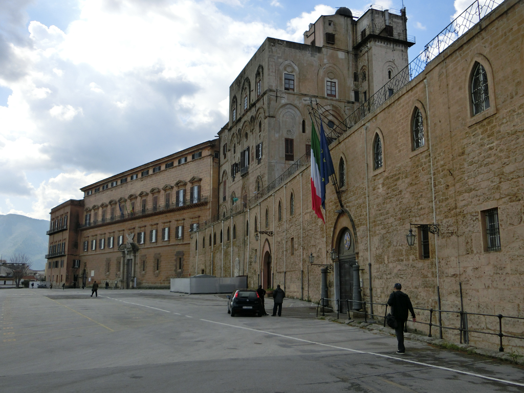 Zurück an der Oberfläche und bei den Lebenden, ging es wieder zum Palazzo dei Normanni. Dort fand ein Cache-Event statt. Wie sich herausstellen sollte, das kleinste Event, bei dem ich je war.