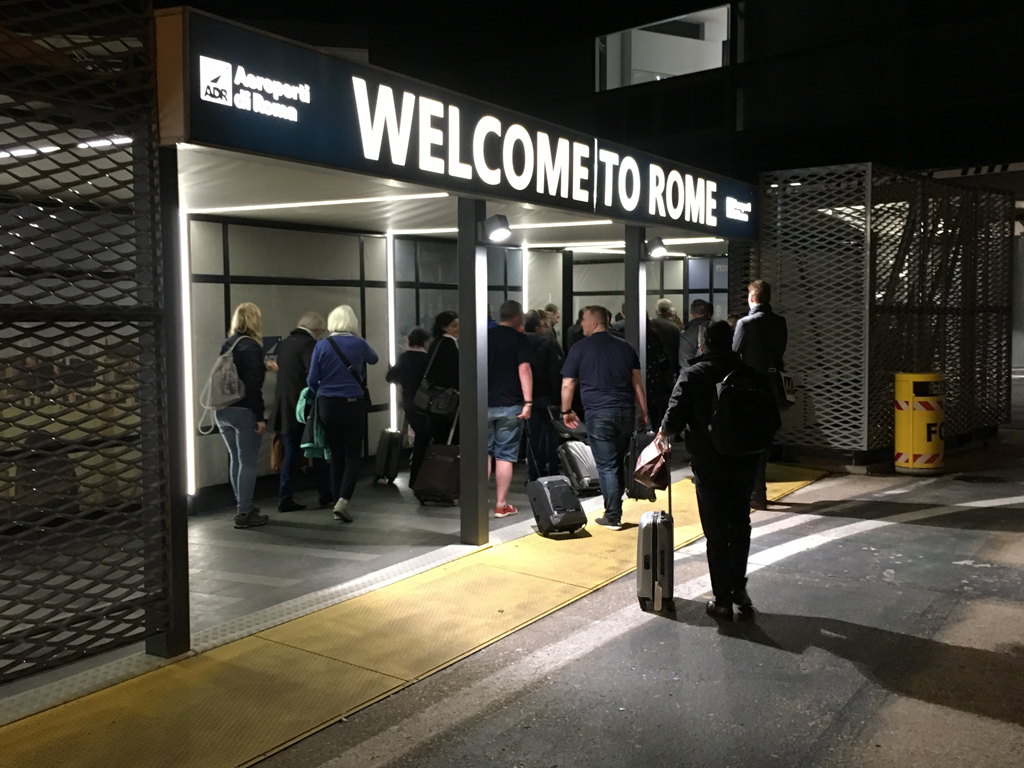Kaum aus dem Flugzeug draußen, konnte ich die italienische Organisation bewundern. Zu wenig Busse am Flugzeug, Chaos am Gepäckband, das Fahrrad irgendwo, aber sonst alles ok.