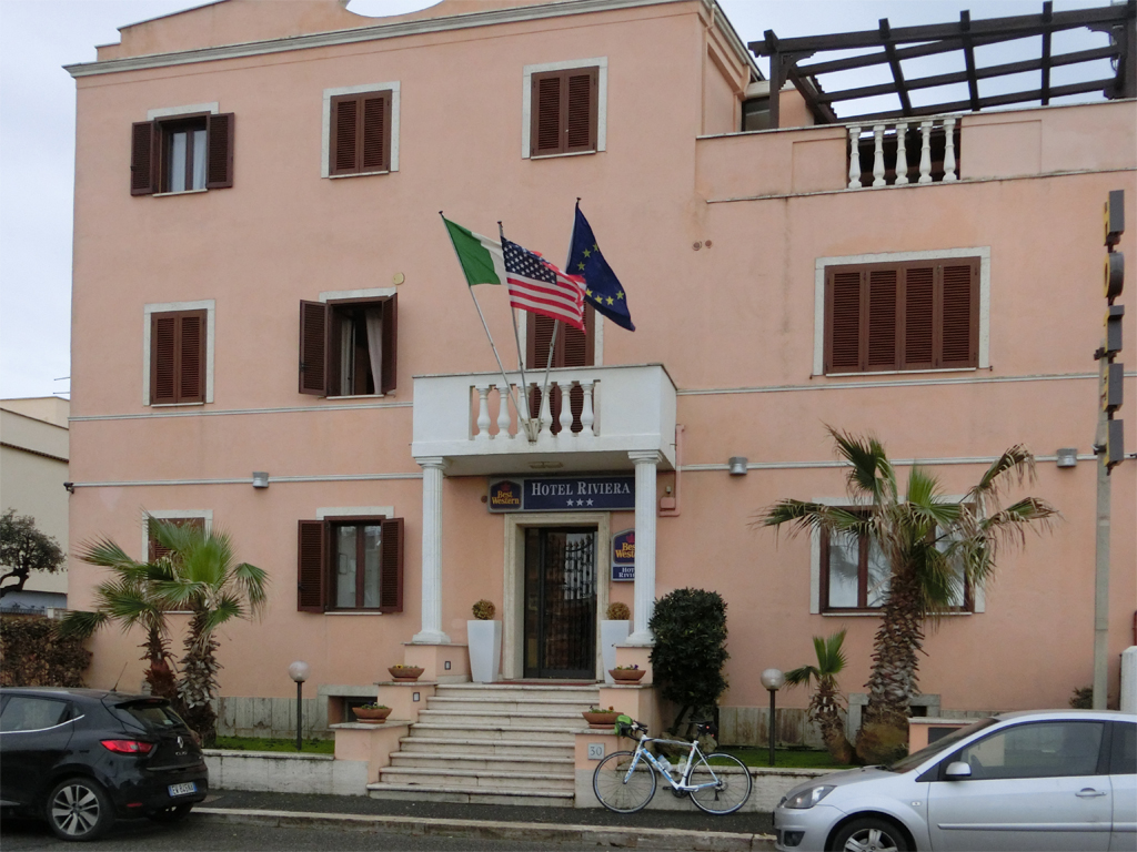 Im Dunklen ging es dann vom Flughafen in Richtung Hotel, das zum Glück nur 5 km entfernt lag. Da ich das Ziel vorher im Navi eingegeben hatte, fand ich das Hotel-Riviera auch auf Anhieb und konnte einchecken. Der Portier versorgte mein Fahrrad und gab mir noch eine Empfehlung für das Abendessen.