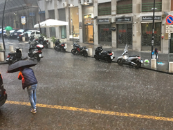 Also zurück zu meinem Fahrrad und los ging's, immer bergauf. Zwar nicht steil, aber stetig. Bei Nocera Superiore begann es wieder stärker zu regnen und so setzte ich mich bei einem Laden (Mondo Parquet) unter das Vordach und wartete etwas. Kurz darauf kamen die Inhaber mit einem kleinen Smart an. Da der Wagen ja nur zwei Sitze hat, saß der Hund auf dem Schoß des Fahrers. Der Hund ist dann auf mich zugestürmt und an mir hoch gesprungen. Die Besitzerin meinte, wahrscheinlich verwechselt er mich in den Radklamotten mit einem ihrer Freunde, der auch oft radelt. Nachdem der Regen wieder etwas nachließ, fuhr ich weiter, weiter bergauf. Irgendwann zeigte mein Navi dann auf eine Straße, die für Radler gesperrt war. Ich fragt einen Mann nach einer Alternative, aber er zeigte nur auf die gesperrte Straße und gab mir zu verstehen, dass es egal sei, ob ich dort fahre oder nicht. Ich habe dann doch noch eine Alternativroute gefunden. War mir irgendwie lieber.