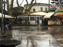 Da heute nicht Sonntag war, hatte mein Hotel einen eigenen Portier, also musste ich die Sache mit ihm klären. Als ich wieder draußen auf der Straße stand, ging gerade ein Wolkenbruch runter. Es schien heute nicht besser zu sein, als die Tage davor. Zum Glück konnte ich den größten Teil des Weges um das Gebäude unter einem kleinen Vorsprung zurücklegen, so dass ich nicht bis auf die Haut nass war, als ich beim Portier, der jetzt immerhin da war, eintraf. Erst behauptete er, dass es kein Frühstück gäbe, gab mir dann aber, nachdem ich ihm die Reservierungsbestätigung gezeigt hatte, einen Gutschein für die nahe gelegene Bar. Da der Regen nachließ und das Frühstück gut war, hellte sich die Laune schon wieder auf.