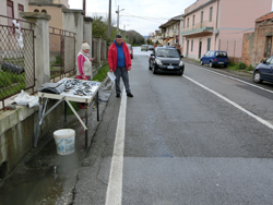 Kurz vor Villafranca Tirrena fuhr ich an einem Fischstand an der Straße vorbei.