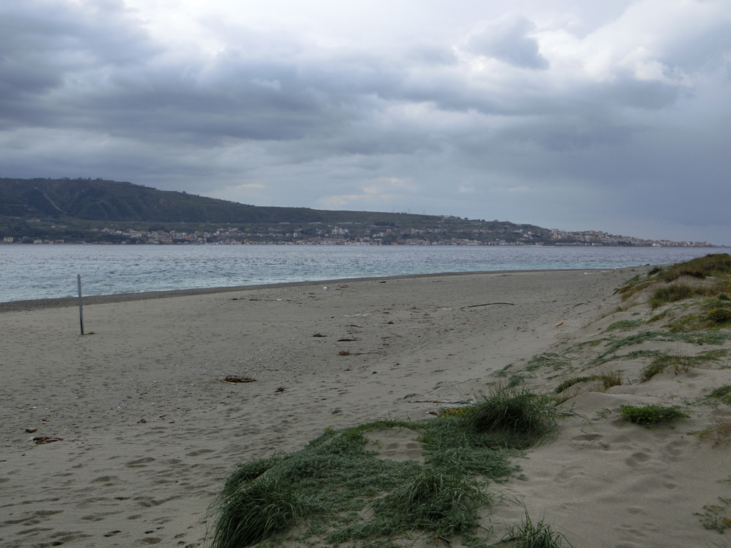 An der NO-Spitzen Siziliens hatte man einen schönen Blick über den Sandstrand hinweg auf das italienische Festland. Anschließen kam ich recht gut voran, es regnete auch ja nicht.