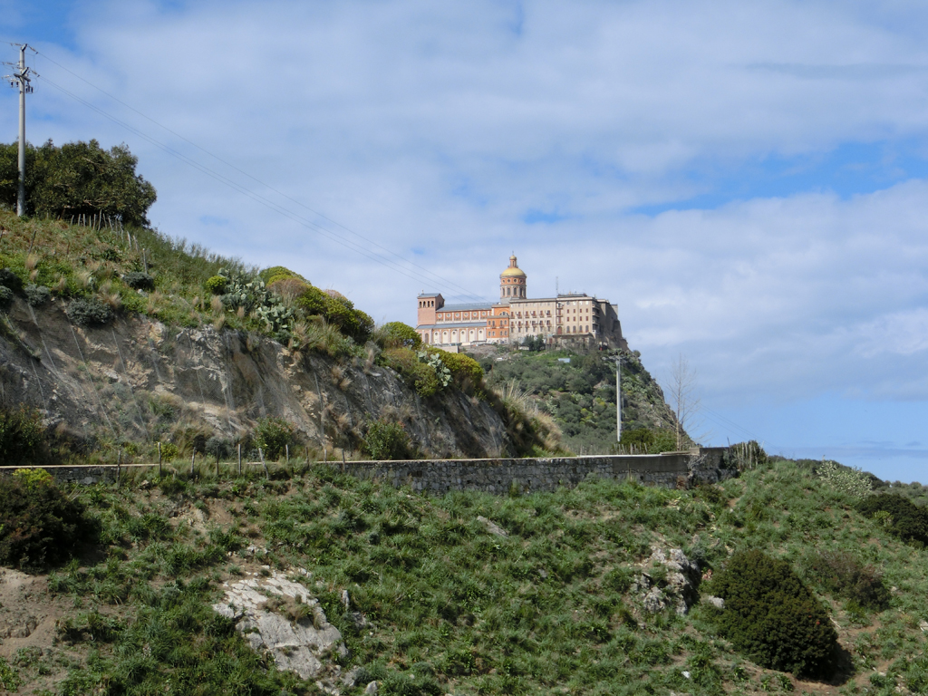 Kurz vor dem 2. Aufstieg für heute zog ich meine Regenklamotten aus und deckte mich in einem Supermarkt noch mit frischen Getränken ein. Als ich die Basilika Santuario Maria SS. Del Tindari sah wusste ich noch nicht, dass ich da hoch muss.