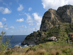 Bei Porticello bog ich dann auf die SP23 ab, um noch einen Abstecher nach Capo Zafferano zu machen. Vielleicht hat man ja von diesem Landzipfel noch einen schönen Blick auf Palermo. Aber was war das? Da stand schon wieder so ein Schild, dass die Straße wegen Bauarbeiten gesperrt sei. Es kamen mir aber jedem Menge Autos und Radfahrer entgegen. Ich fragt eine Frau, die an der Straße lief und sie sagte mir, dass die Straße offen sei. Also weiter...