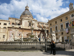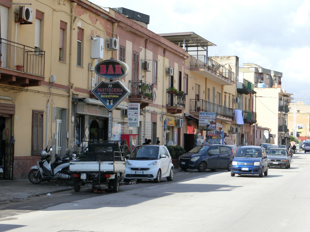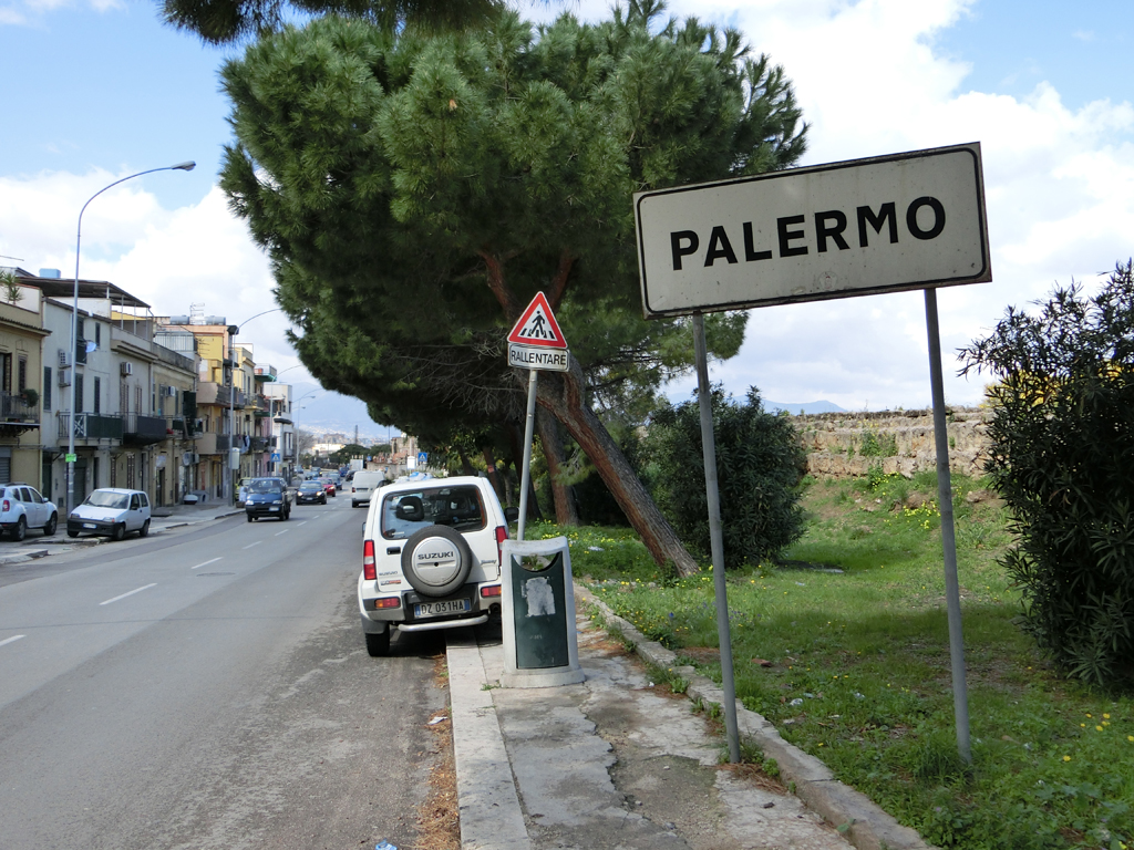 Jetzt musst ich nur noch ohne größere Blessuren durch den Stadtverkehr von Palermo kommen. Waren interessante Ansichten einer Stadt, so vom Stadtrand immer weiter in Richtung Zentrum. Irgendwann hat sich dann so ein freundlicher Italiener mit seinem dicken SUV an mir vorbei gedrängelt und hat dabei meinen Schuh im Rucksack mit seinem Außenspiegel getroffen. Zum Glück hat er mich nicht verstanden. Und die Hände hab ich brav am Lenker gelassen. Da ich noch etwas Zeit hatte, kam ich auf die doofe Idee, noch einen Geocache anzufahren und bei dem Fahrradladen vorbei zu schauen, bei dem ich vergeblich versucht hatte, einen leeren Fahrradkarton für den Rückflug zu organisieren. Kalr, den Geocache habe ich nicht gefunden, dafür habe ich mich in dem Einbahnstraßengewirr von Palermo hoffnungslos verfahren.