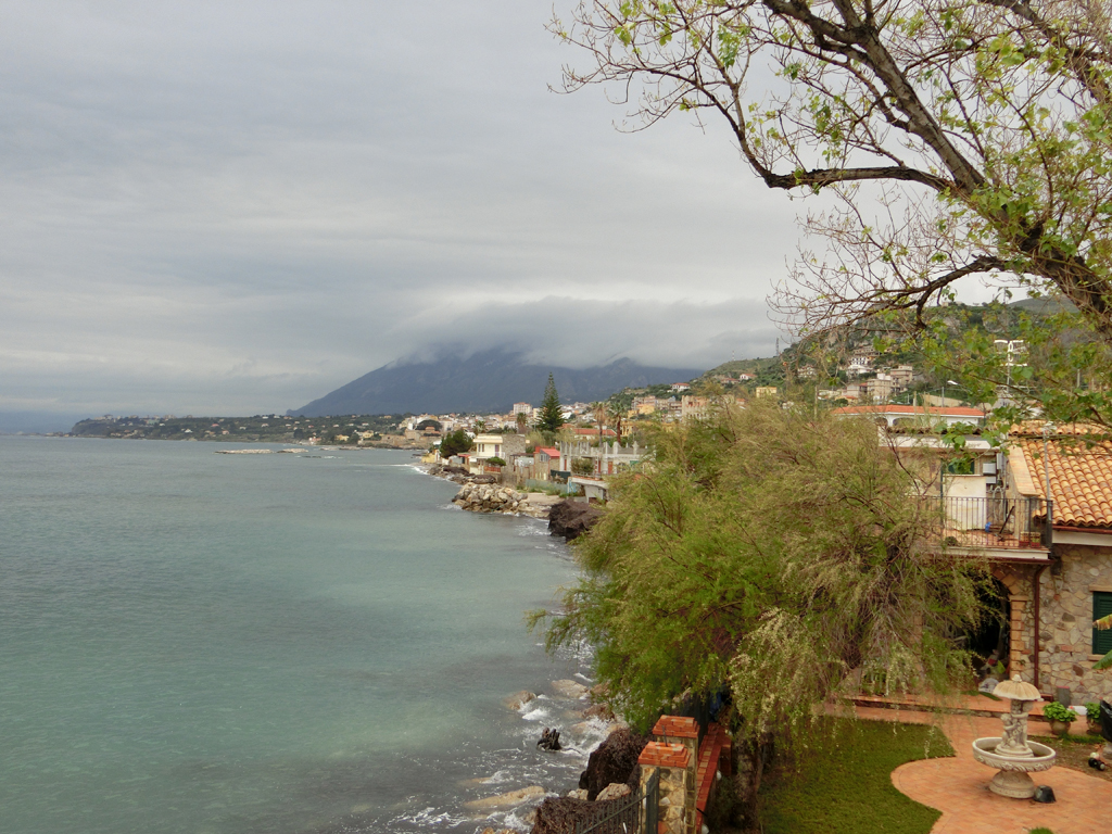 So gegen Viertel nach 9 startete ich vom Hotel. Da es aufgehört hatte zu regnen und der Himmel in Richtung Palermo auch heller wurde, beschloss ich, voll auf schönes und wärmeres Wetter zu setzen. Und so ging es wieder hinaus auf die SS113 in Richtung Palermo.